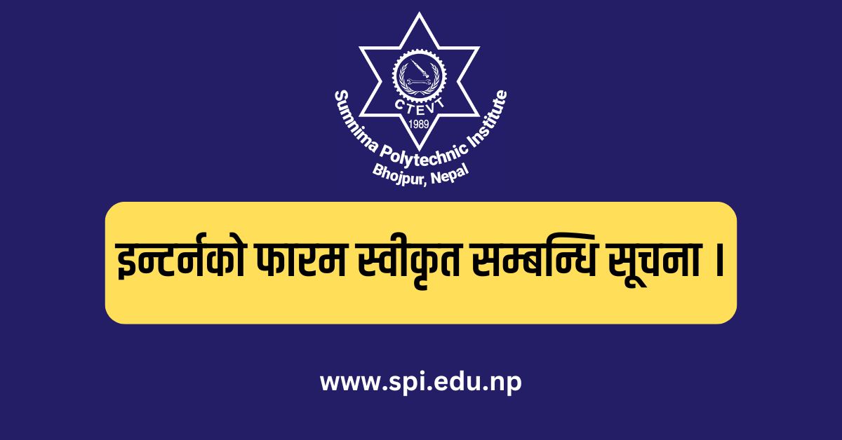 1209, 2025 इन्टर्नको फारम स्वीकृत सम्बन्धि सूचना । Gallery इन्टर्नको फारम स्वीकृत सम्बन्धि सूचना । Notice इन्टर्नको फारम स्वीकृत सम्बन्धि सूचना ।2025-09-12T17:29:27+05:45By spiadmin|Categories: Notice|Read More