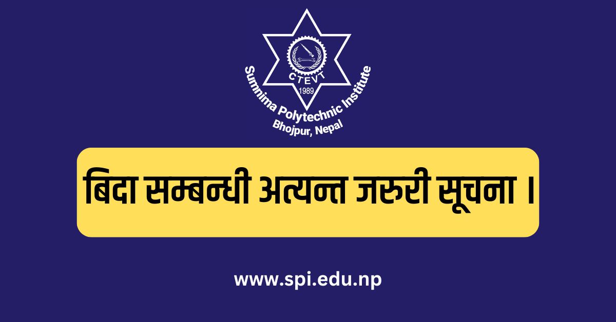 1209, 2025 बिदा सम्बन्धी अत्यन्त जरुरी सूचना । Gallery बिदा सम्बन्धी अत्यन्त जरुरी सूचना । Notice बिदा सम्बन्धी अत्यन्त जरुरी सूचना ।2025-09-12T17:07:46+05:45By spiadmin|Categories: Notice|Read More